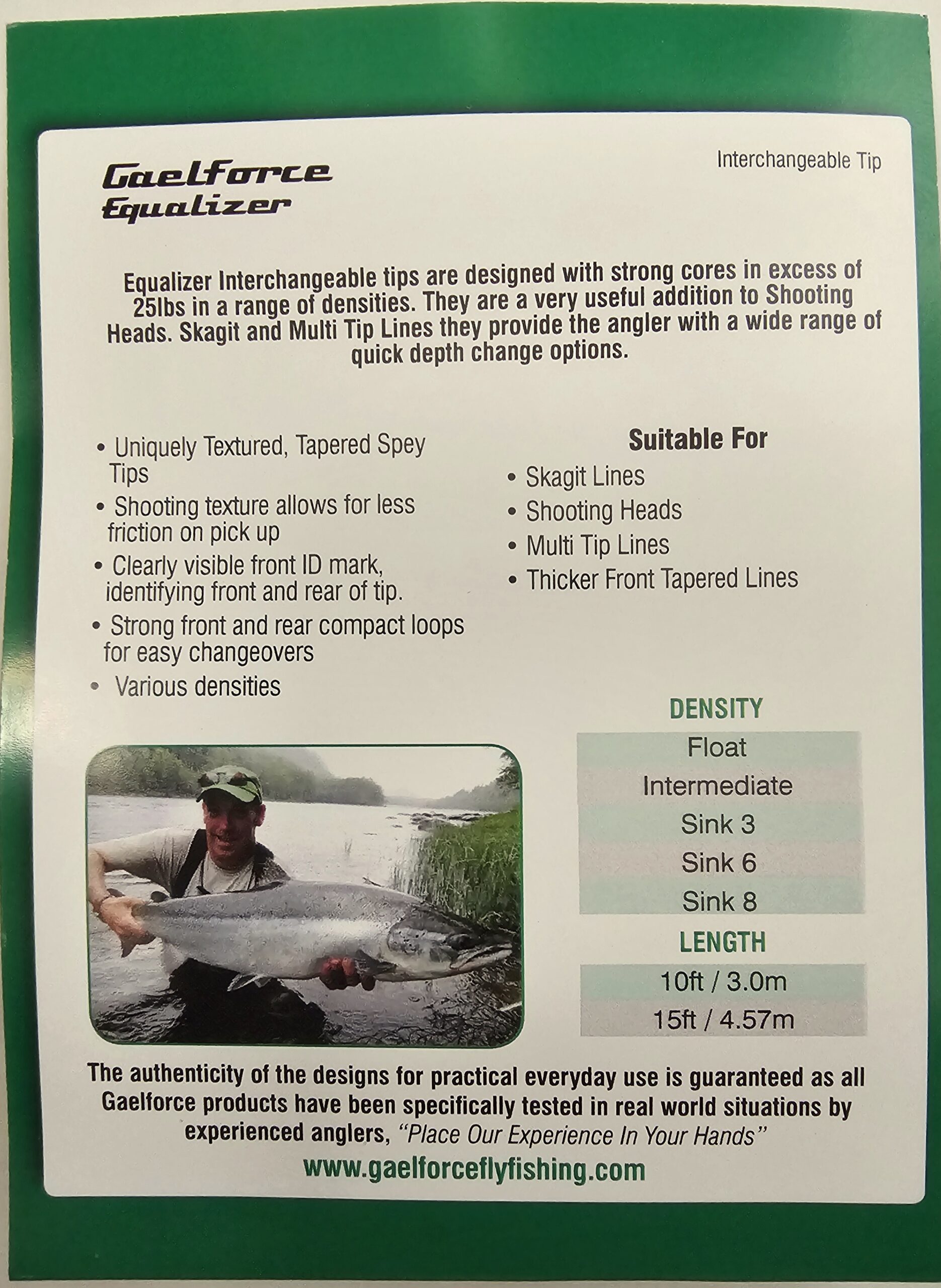‘Equalizer’ Interchangeable Tips are density compensated and are fitted with a strong neat loop front and rear for quick easy changeovers,they are colour coded for easy identification