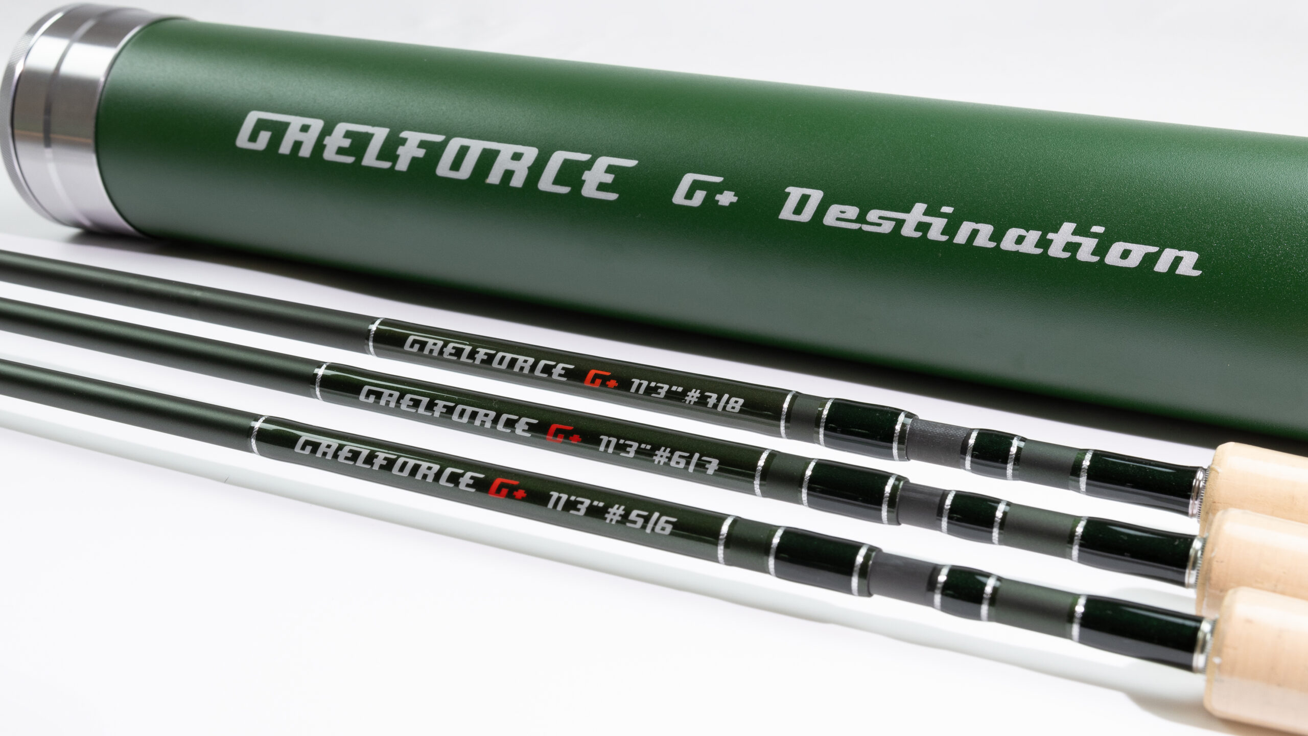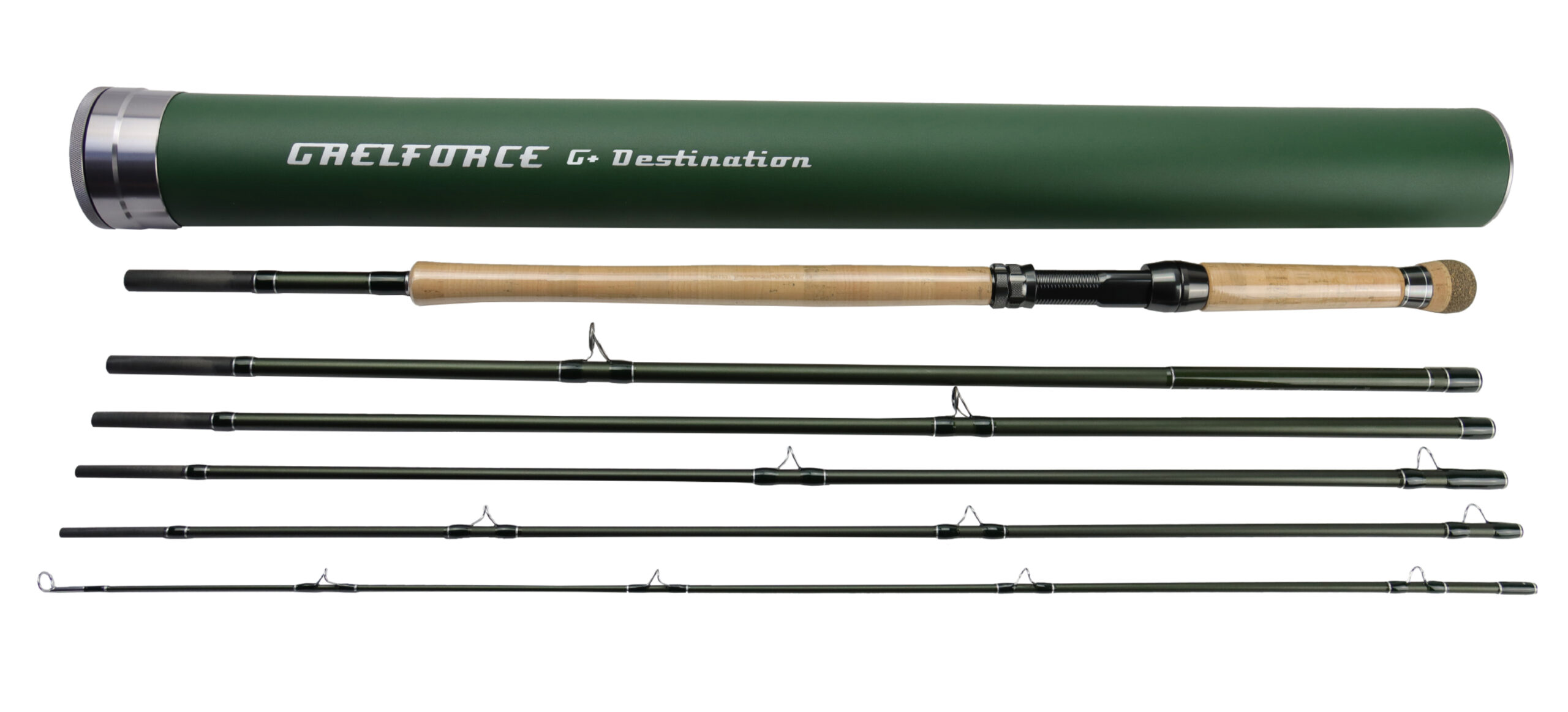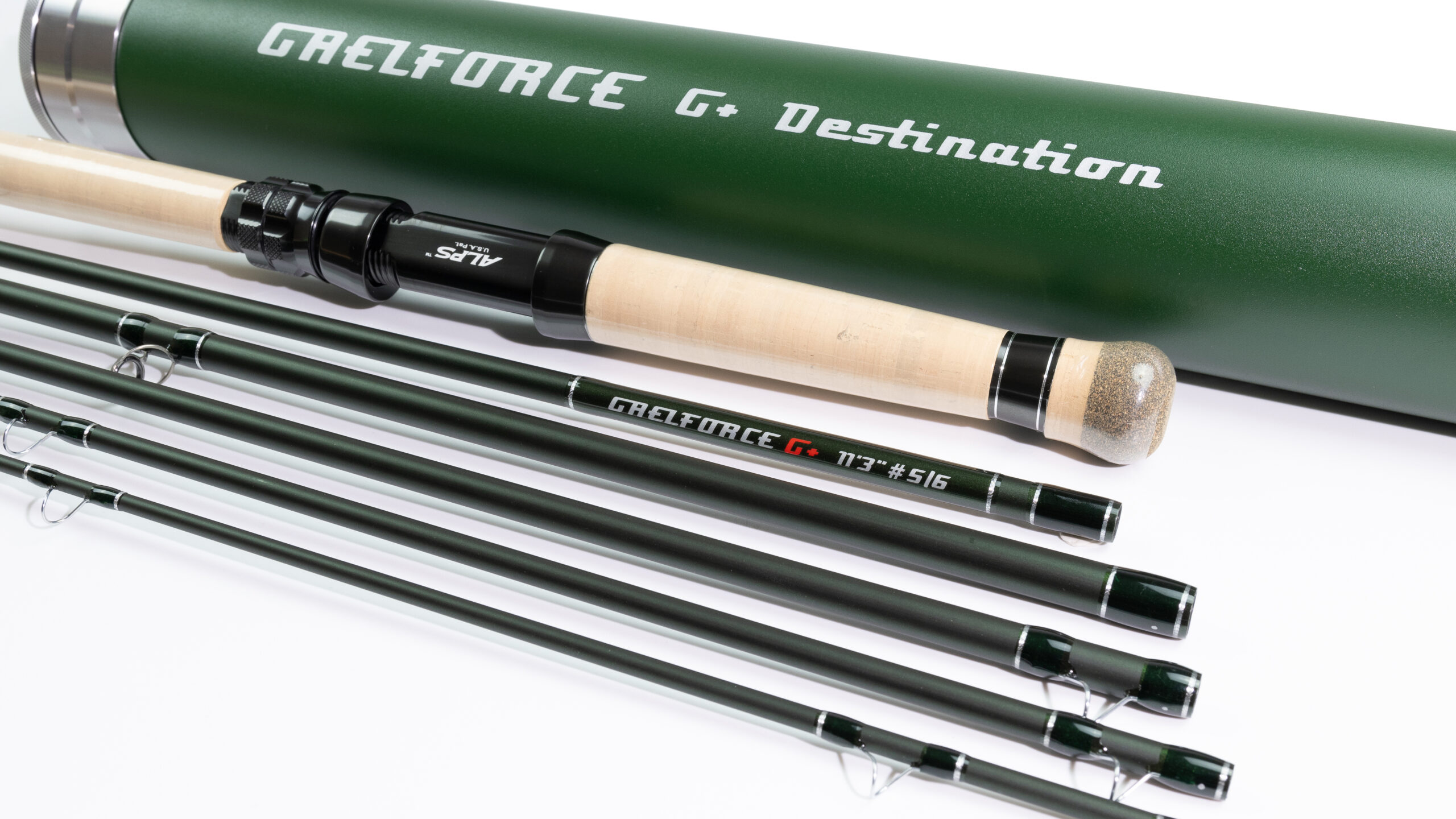• Aluminum rod tube in GAELFORCE Green with laser-engraved rod cap and a high-quality cloth bag with rod identification