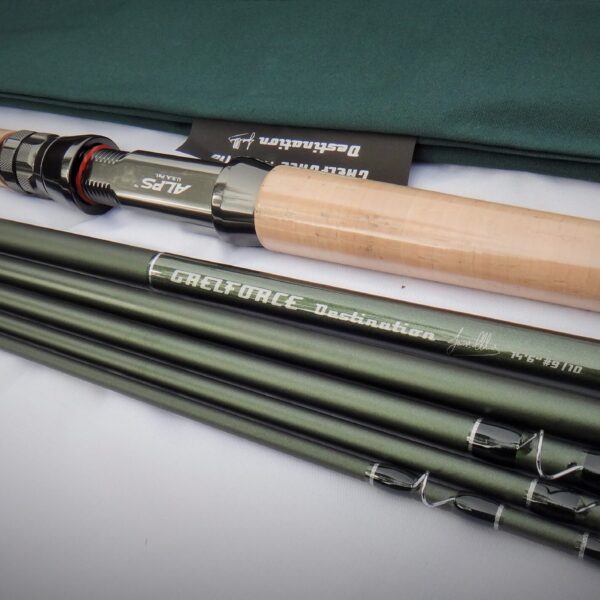 Utilizing the finest new graphite materials in the construction of the blank, the GAELFORCE Destination 11-foot 3-inch for #7/8 casts equally well overhead with a Bomber dry fly or with micro tubes when maximum stealth is required. The strong tip and the deep progressive action—the signature flex of the Destination series—eliminate side deflection of the tip when lifting line from the water and provide maximum feel when making a change of direction with sustained-anchor casts or with traditional spey casts.